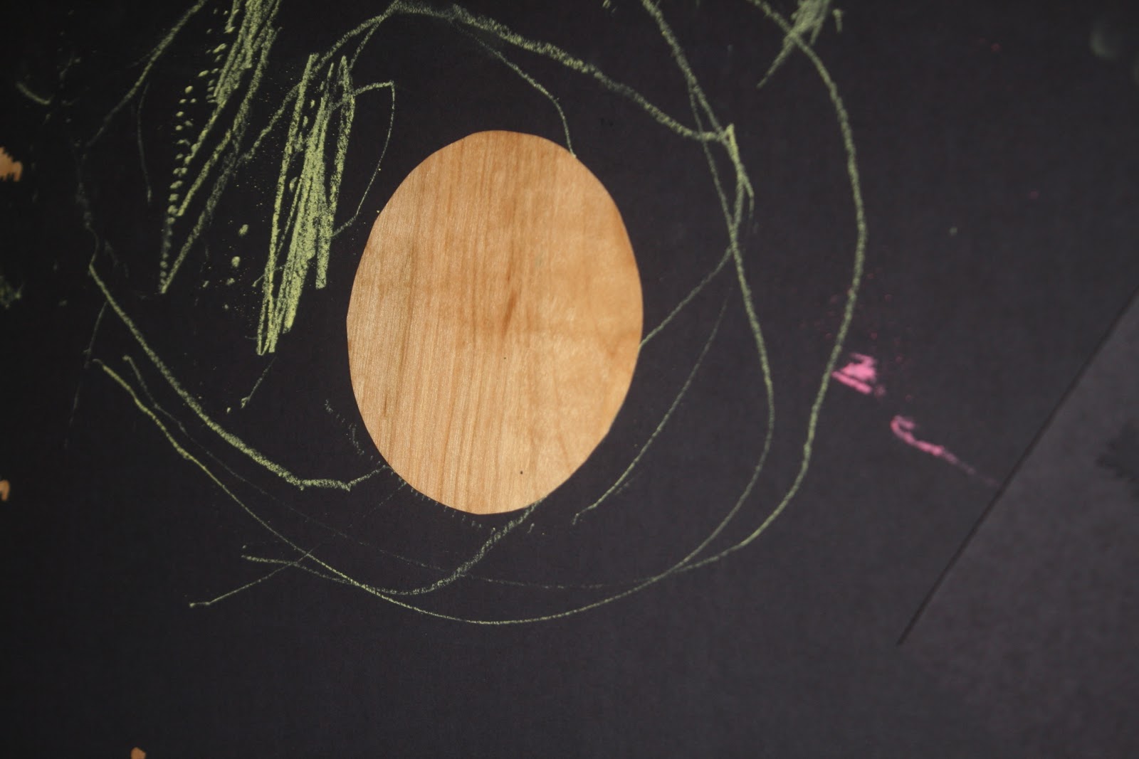 The children enjoyed exploring the world of negative space today drawing with chalk. We cut a circle out in the middle of a piece of black paper and let the children explore with the open hole as they were drawing. Some of the children used the hole to mimic a circle as they drew circles around the hole. We also punched dinosaurs with our punch stamp to add to our negative space. Cade discovered he could make chalk print dinosaurs on the table if he scribbled back and forth in the dinosaur hole. Soon others followed drawing on all the other dinosaurs. They also made dinosaur prints on a piece of white paper with their colored chalk. Rylan made a "Barney" person next to his negative space circle. The other children also enjoyed how vibrant the chalk colors would appear on their black paper. They also experimented smearing the chalk across their papers. What a fun way to change up the way we can draw!